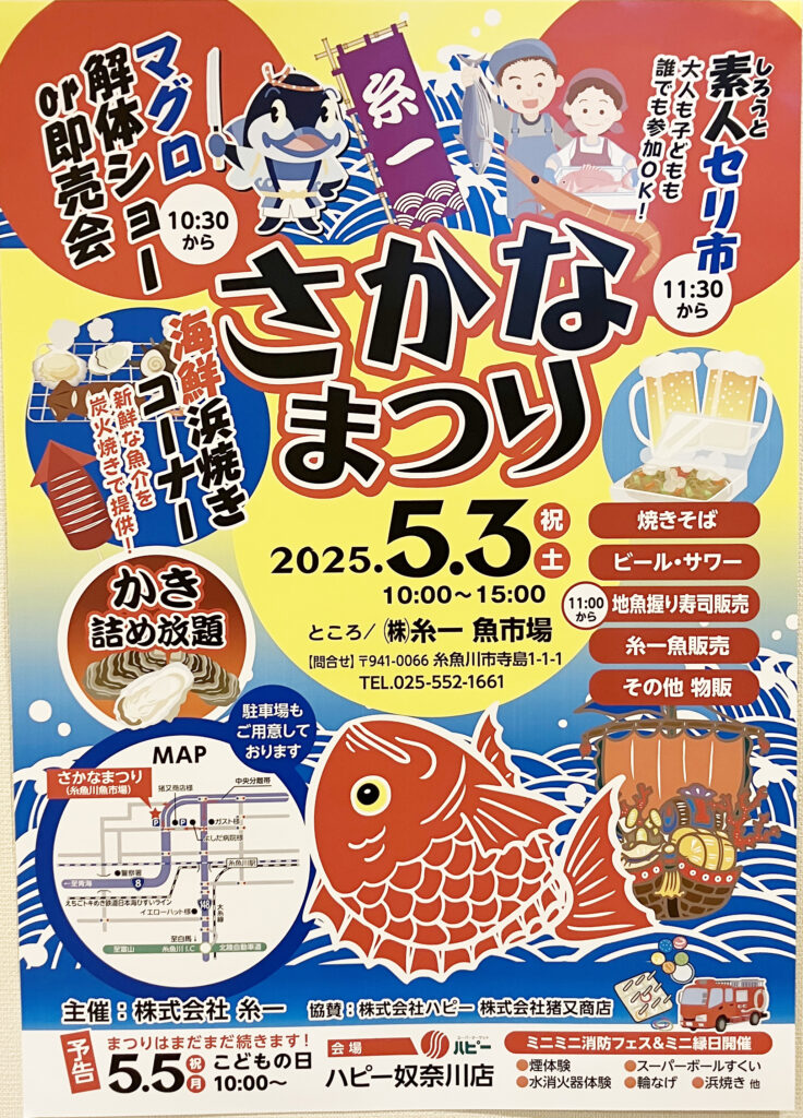 開催場所•••糸一魚市場(新潟県糸魚川市寺島1丁目1-16)駐車場完備